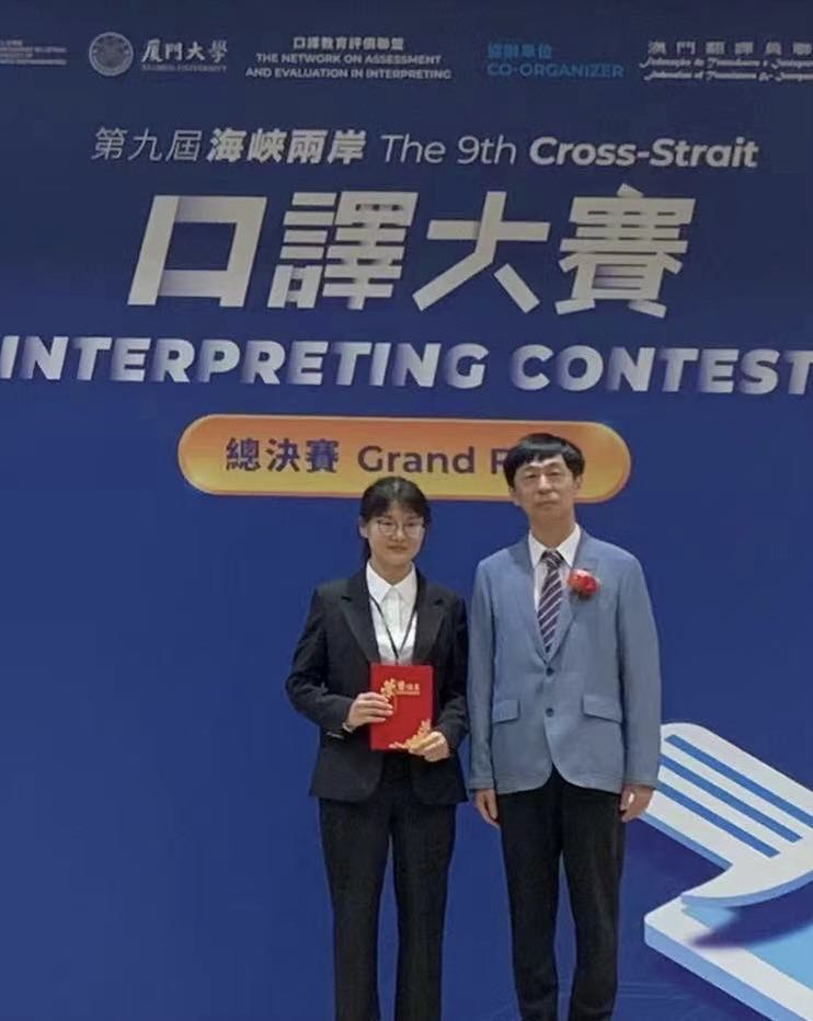 2023年5月21日,第九届海峡两岸口译大赛总决赛在澳门大学举行,beat3652021级会议口译专业硕士生唐学文在本院教师曾佳宁指导下,以总分第一的佳绩荣获冠军(特等奖) 海峡两岸关系协会驻澳门特别行政区办事处主任王刚(图右)为唐学文颁奖 本次总决赛由澳门大学、厦门大学和口译教育评价联盟主办,主题为“future skills”,共有24名来自大陆及港澳台地区的区赛晋级选手参与角...