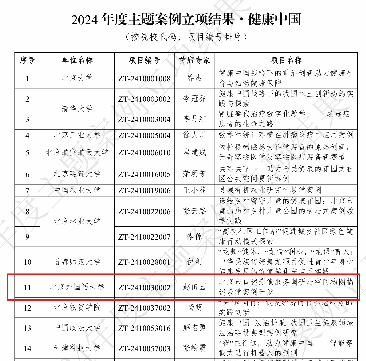 近日,教育部学位与研究生教育发展中心(简称学位中心)公布了2024年度主题案例立项结果。本年度围绕“绿色发展”“新质生产力”“健康中国”“数字中国”四个主题开展征集。beat365学科发展中心主任赵田园副教授作为首席专家,香港城市大学鄢秀教授作为指导专家参与申报的案例《北京市口述影像服务调研与空间构图描述教学案例开发》,成功入选2024年度“健康中国”主题案例,成为我校本年度唯一获批立项案例。该案例项目采取实证研究与教学创新双轨并进模式:...