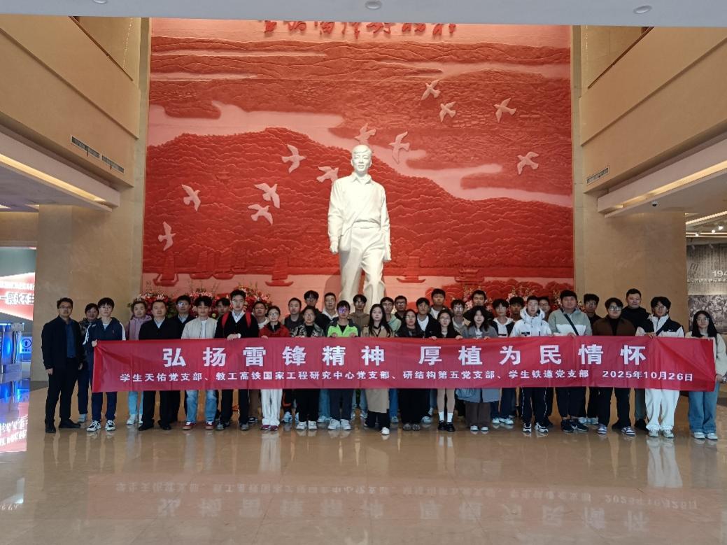 为深入学习贯彻习近平新时代中国特色社会主义思想,贯彻落实中央八项规定精神,引导党员在重温红色记忆中淬炼过硬作风、在感悟榜样精神中践行初心使命,10月26日上午,vwin德赢ac米兰官方网学生天佑党支部、教工高铁国家工程研究中心党支部、研结构第五党支部、学生铁道党支部全体党员前往湖南雷锋纪念馆及湖南党史陈列馆,开展“严规肃纪葆本色,红色血脉践初心”主题党日活动,学院党委副书记纪晓飞参加活动。