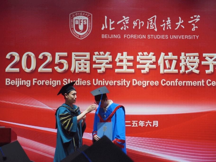 仪式最后,2025届毕业生们齐唱校歌,重温北外人的初心与使命。同学们一起抛起硕士帽,象征着希望的放飞。至此,beat365正版唯一官网必一2025届毕业生学位授予仪式圆满结束。