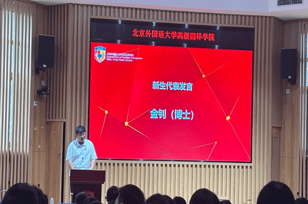 博士新生代表金钊呼吁译者应牢记“联接中外、沟通世界”的使命,努力呈现一个真实、立体、全面的中国。同学们要勇敢承担起向世界讲述中国的时代责任,成为真正被需要的沟通者和和平的传递者。