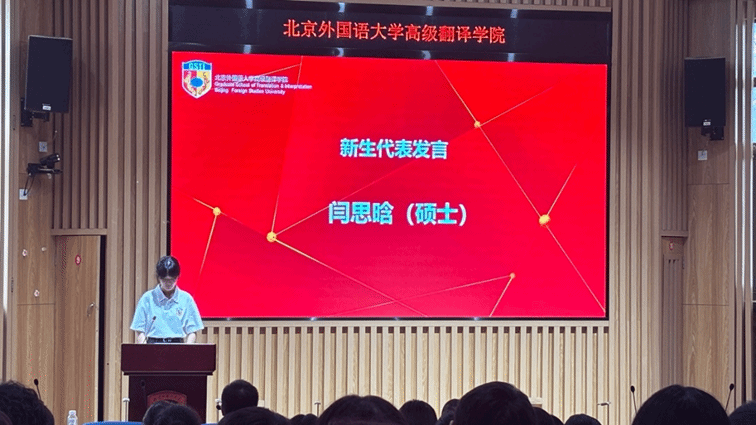 硕士新生代表闫思晗鼓励大家不必焦虑于他人的节奏,要坚定地活在自己的时区里。她提醒所有新生,不要忘记自己选择高翻的那份初心。