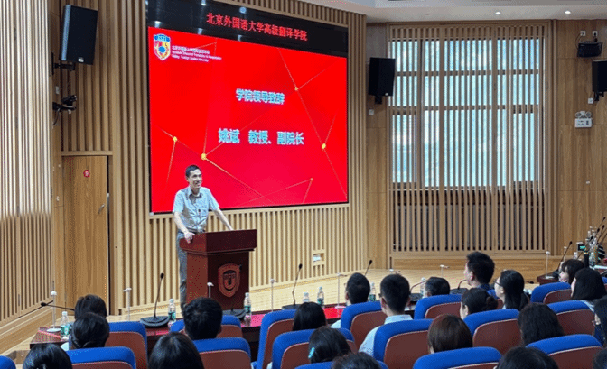 王薇薇书记以“译以载道,砺思志远”的院训勉励新生,并提出三点期望:一是胸怀家国、志存高远,在服务国家战略中锚定人生航向;二是苦练内功、追求卓越,在精进专业本领中锤炼立身之本;三是坚守初心、立德修身,在树立理想信念中实现人生价值。她希望大家珍惜在这里的每一寸光阴,秉承院训精神,努力成为有家国情怀、有全球视野、有专业本领的复合型高级翻译人才,让世界听到大家的声音。