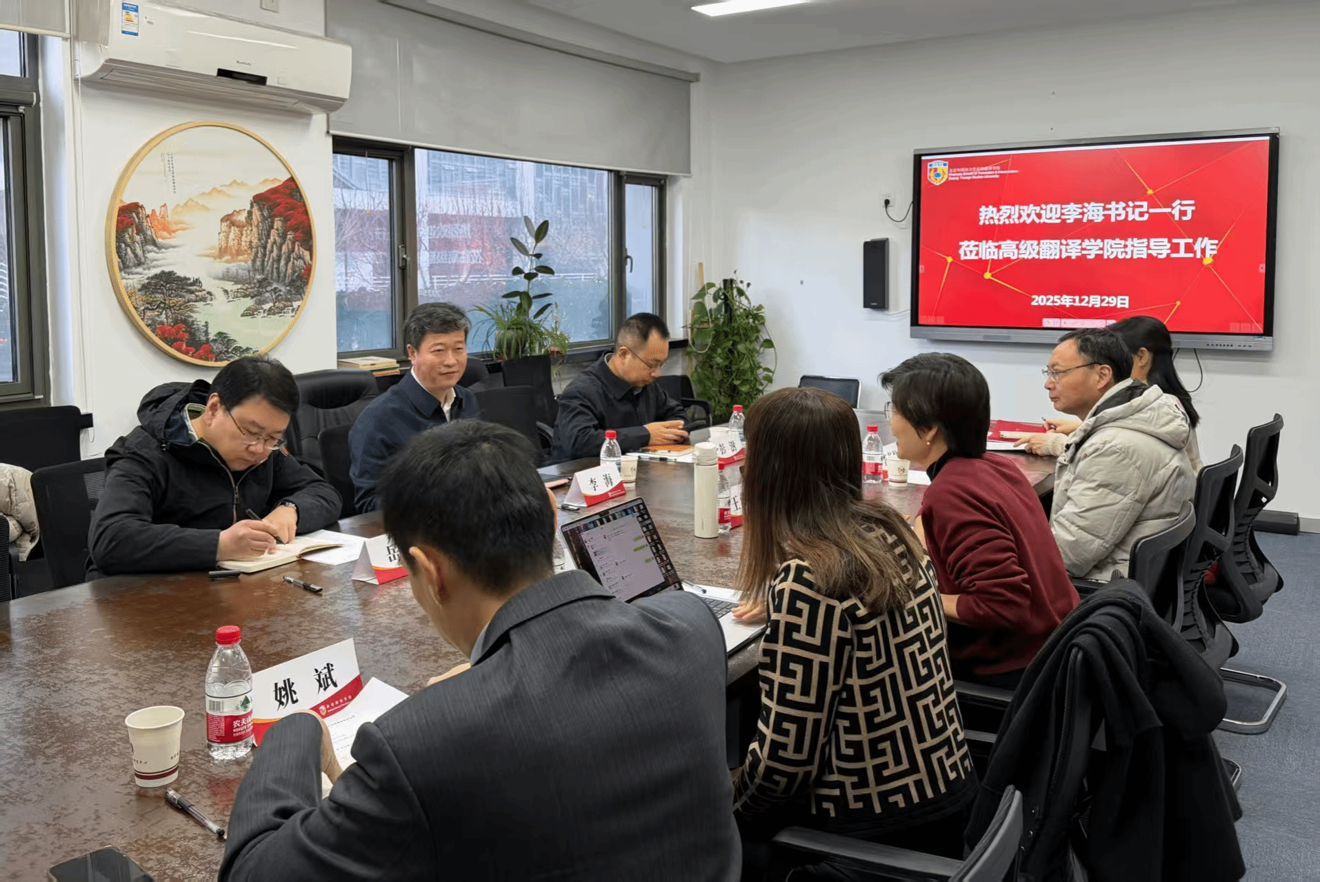 beat365正版唯一官网必一党总支书记王薇薇,院长任文分别就学院党建思政、人才培养、学科发展、有组织科研和教师队伍建设等方面做了专题汇报。李海书记认真听取汇报,并围绕学院特色专业发展与复语复合型翻译人才培养等方面与大家进行交流。