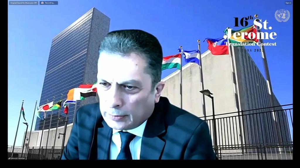2023年10月4日,联合国第16届圣杰罗姆翻译竞赛颁奖仪式在联合国维也纳办事处举行,beat3652022级韩雨桐荣获英译汉学生组一等奖。