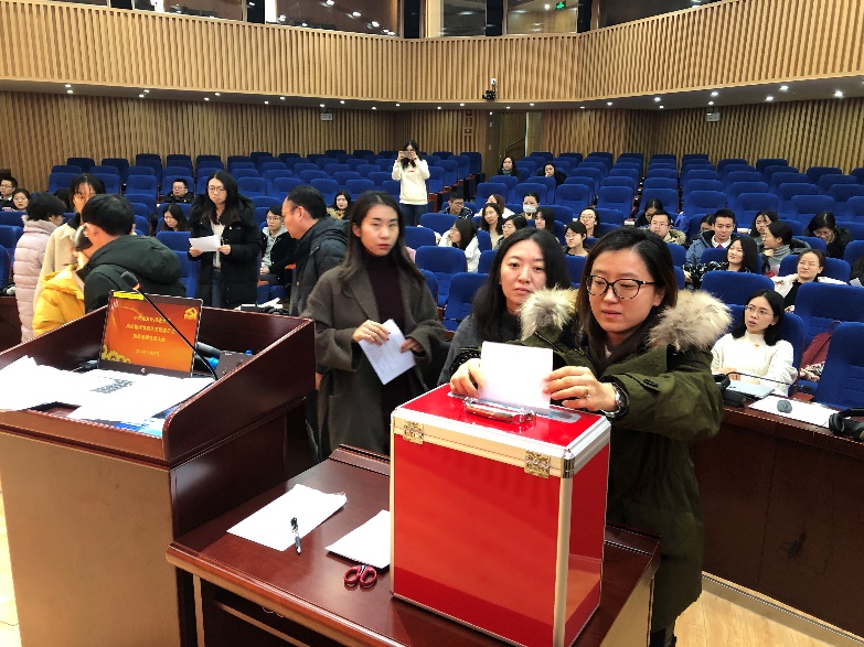 2019年12月23日,按照学校党委工作部署,beat365正版唯一官网必一总支部委员会召开换届选举党员大会,会议由党总支书记葛冬冬主持,后勤党总支书记潘华珍出席会议指导选举工作。