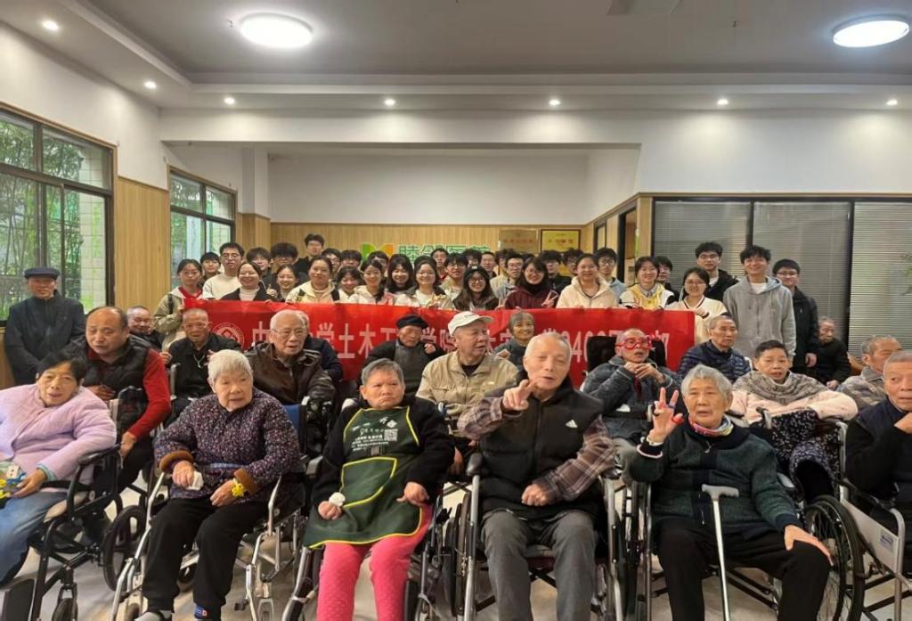 活动中,同学们与老人共唱《东方红》《没有共产党就没有新中国》等经典红歌,熟悉的旋律唤起老人们的时代记忆;手工制作环节,大家协力完成扭扭棒眼镜、小花等作品,笑语不断;交谈时间里,两代人共话家常,分享经历,情感真挚。同学们还主动清扫院内环境,擦拭栏杆、整理活动区域,以劳动传递关怀