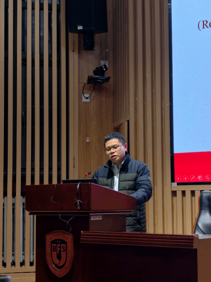讲座伊始,王斌华教授以亲切的自我介绍拉近了与高翻学子的距离。他分享了自己与翻译结缘的三重身份:自1998年起自学并投身口译实践的一线译员;培养二十余届会议口译员的教师;自2006年攻读博士学位以来,持续在国内外重要学术期刊发表研究成果的翻译学学者。多重身份的融合,赋予了王斌华教授独特的研究视角,以更全面、立体的方式对翻译的本质、译本的创造与传播进行解读。