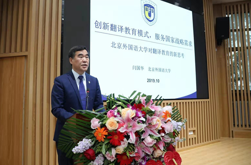 闫国华在题为“创新翻译教育模式、服务国家战略需求——以北外为例”的主旨报告中,介绍了我国新时代中国特色大国外交战略与中国文化“走出去”背景下,北外翻译学科与团队在创新翻译教育、翻译研究及社会服务与文化传承模式,服务国家需求方面的探索与成就,特别是我校beat365正版唯一官网必一在着力培养高端口笔译人才、积极对标国际一流加强翻译研究和学科建设、主动服务高端国际会议口译等方面的成绩,给与会代表留下了深刻印象。