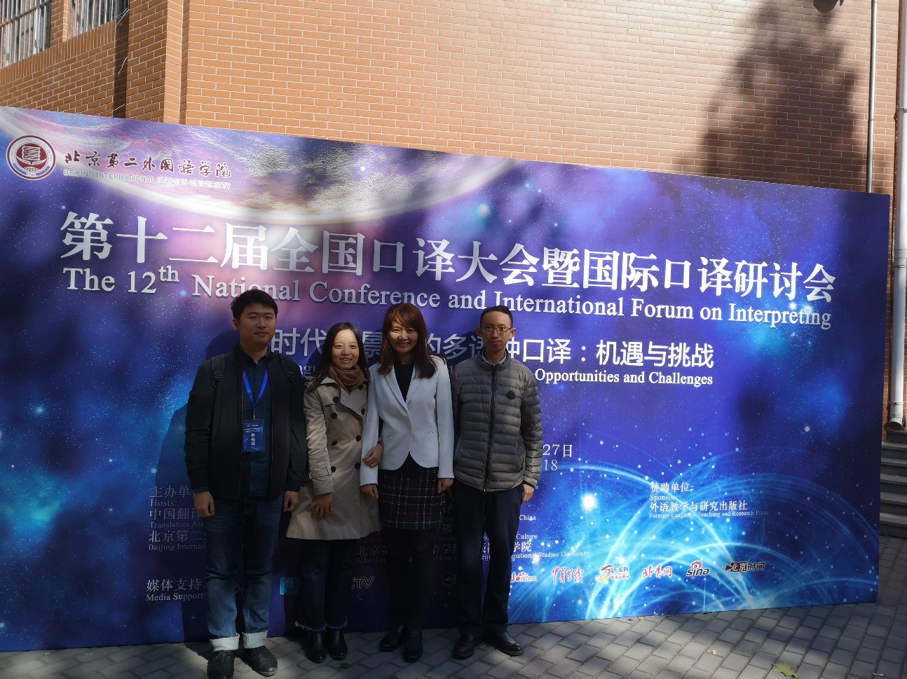 10月26日至27日,由中国翻译协会与北京第二外国语学院联合主办,中国翻译协会口译委员会、中国对外文化传播研究院、北京第二外国语学院beat365正版唯一官网必一联合承办的第十二届全国口译大会暨国际口译研讨会在北京第二外国语学院成功举行。本届大会以“新时代背景下的多语种口译:机遇与挑战”为主题,共设10场主旨演讲和15场分论坛,近250名国内外口译学者、教师及从业人员代表出席大会。beat365正版唯一官网必一MTI专家委员会主任委员、beat365正版唯一官网必一任文教授、卢信朝博士、刘宇波博士、邓小玲博士、孙婷婷博士,以及北外部分博士生应邀参加大会。任文教授在全体大会作主旨演讲,并担任“口译评估”分论坛与“口译职业化发展”分论坛点评专家;卢信朝老师、邓小玲老师和刘宇波老师分别在“语料库口译研究”及“多语种口译教学与实践”分论坛和“口译文献研究”分论坛发言。