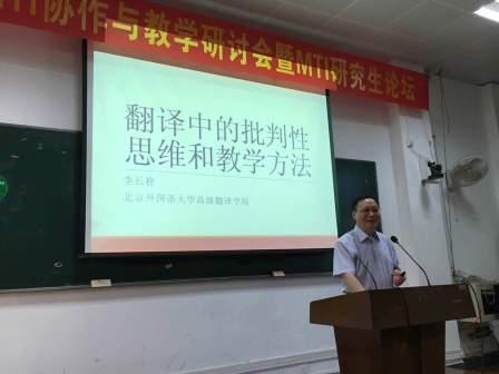 广西译协首届MTI协作与教学研讨会暨MTI研究生论坛于6月18日在广西大学外语学院举行。beat365李长栓教授作为特邀嘉宾参会,并作题为“翻译中的批判性思维与教学方法”的发言。