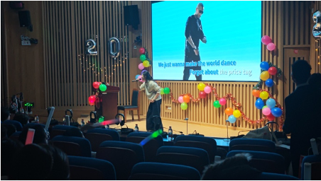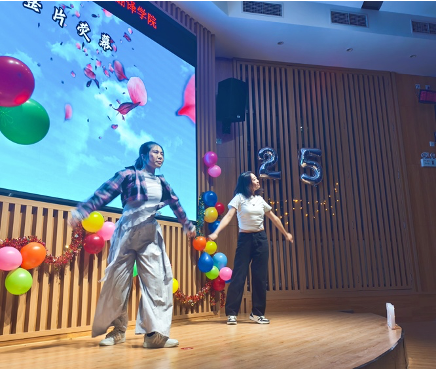本次晚会上大家也一同观看了高翻院的老师们为全体2025级同学送出的特别祝福。视频中老师们关心同学们的生活、成长和学习,殷切嘱托同学们永存对语言的初心,保持纯真与好奇,在科技与世界格局快速变化的当下拥抱未知与挑战,勇于跨界,培养思辨能力,构筑起人类的主体性,感受翻译的美好与独特魅力。岁末寒冬,这一份充满深意的祝福无疑是晚会最温暖的瞬间。