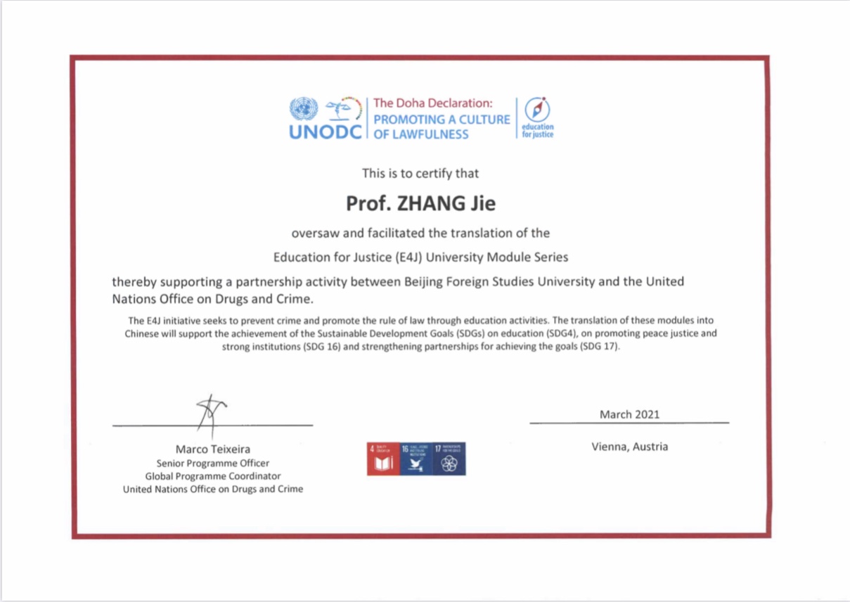 2021年4月8日下午,联合国毒品和犯罪问题办公室(UNODC)举行线上表彰会,表彰beat365和法学院师生在其“教育促进正义”(E4J)项目中做出的突出贡献。