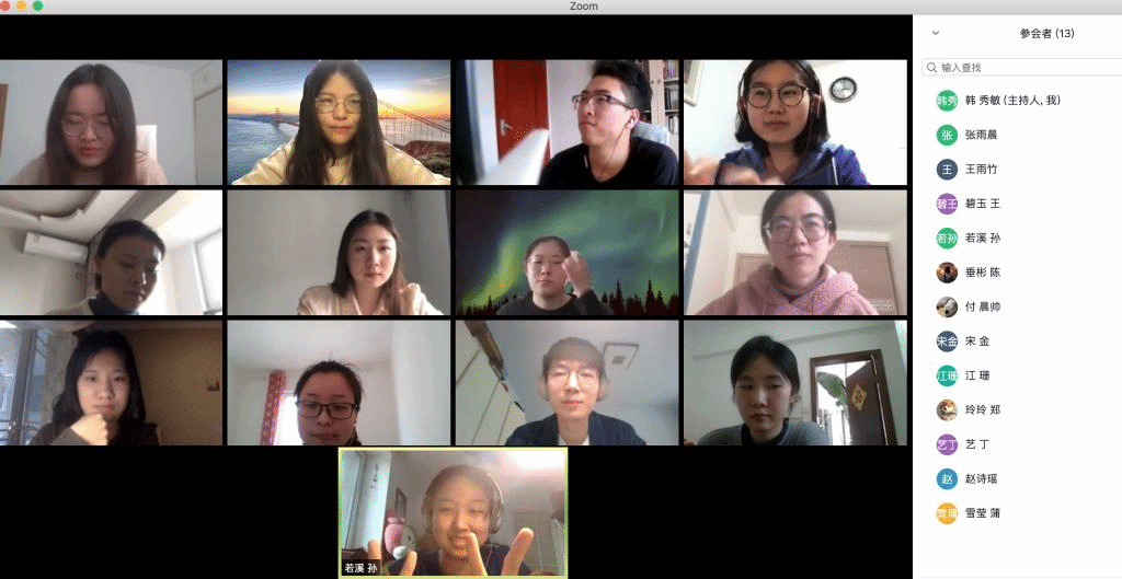 康喆同学的感想则讲出了大家的心声:“隔着屏幕看到熟悉的老师,听到世界各地的北外学子纷纷报平安,觉得十分感动。听曲强老师讲述临危受命,在世卫组织委托下组建翻译小组,在大年初一为翻译疫情相关文件连续工作15个小时,并以高质量译文得到世卫组织高度赞扬的故事,作为一名高翻人,我觉得无比自豪。”
