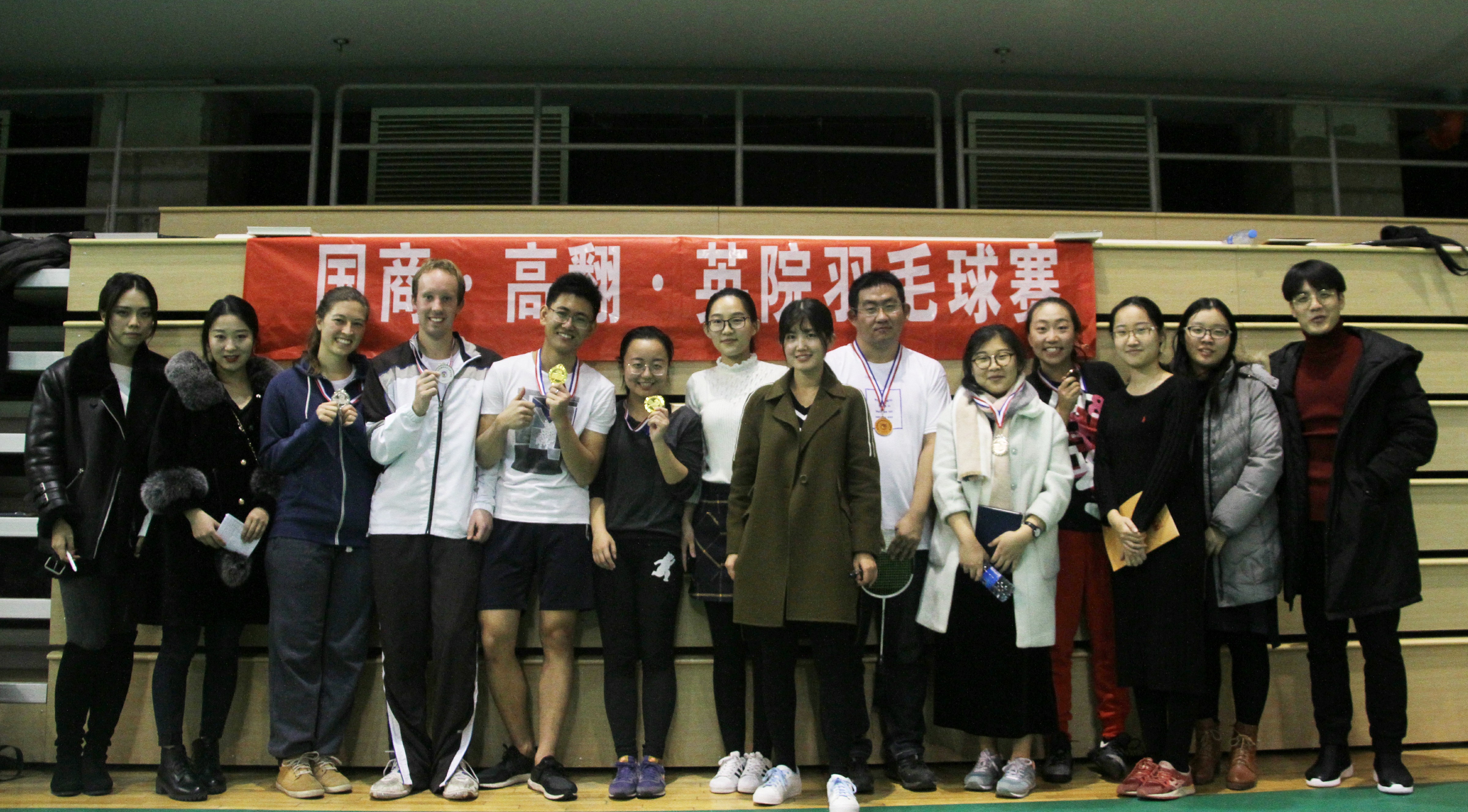 2017年11月25日、26日,beat365正版唯一官网必一、国际商学院和英语学院联合举办了第三届三院羽毛球友谊赛。经过激烈角逐,高翻斩获了男双(陈艺夫/陈阳)冠军,男单(潘云昊)、女双(付丽媛/杨瑷淩)亚军以及女单(田丽娜)、混双(陈馨/陈艺夫)季军。