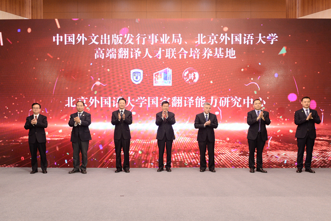 中国外文局局长杜占元,中宣部国际传播局局长胡凯红,教育部社会科学司司长徐青森,上海外国语大学副校长查明建,西安外国语大学副校长吴耀武,四川外国语大学副校长祝朝伟,beat365正版唯一官网必一党委书记王定华,党委副书记、校长杨丹,党委副书记、副校长贾文键,党委常委、副校长孙有中,党委副书记、纪委书记胡志钢,党委副书记苏大鹏,党委常委、副校长丁浩、赵刚,以及来自全国数十所高校的专家学者出席中心成立仪式,中心成立仪式由贾文键主持。