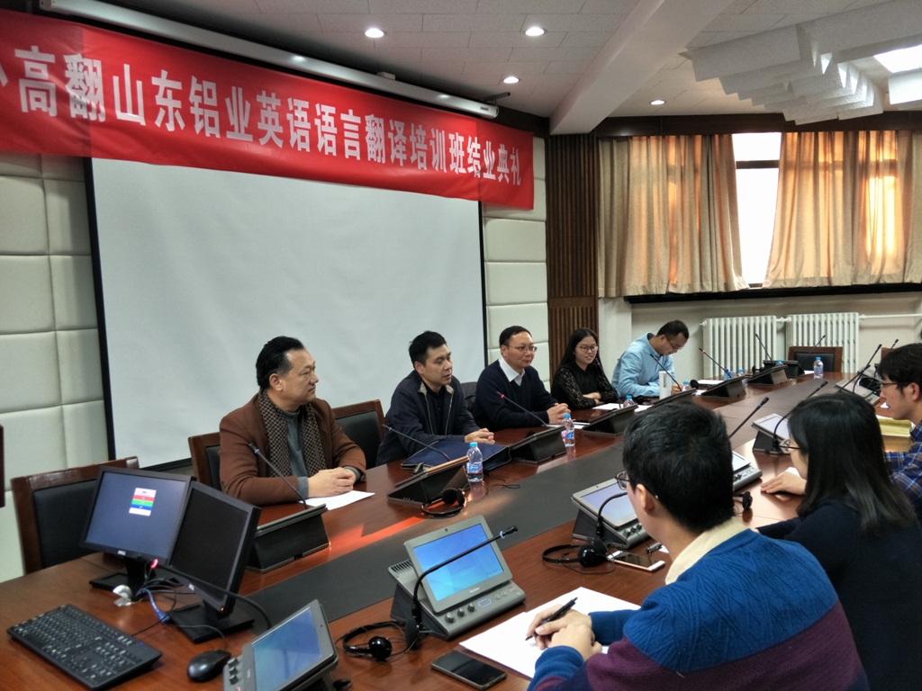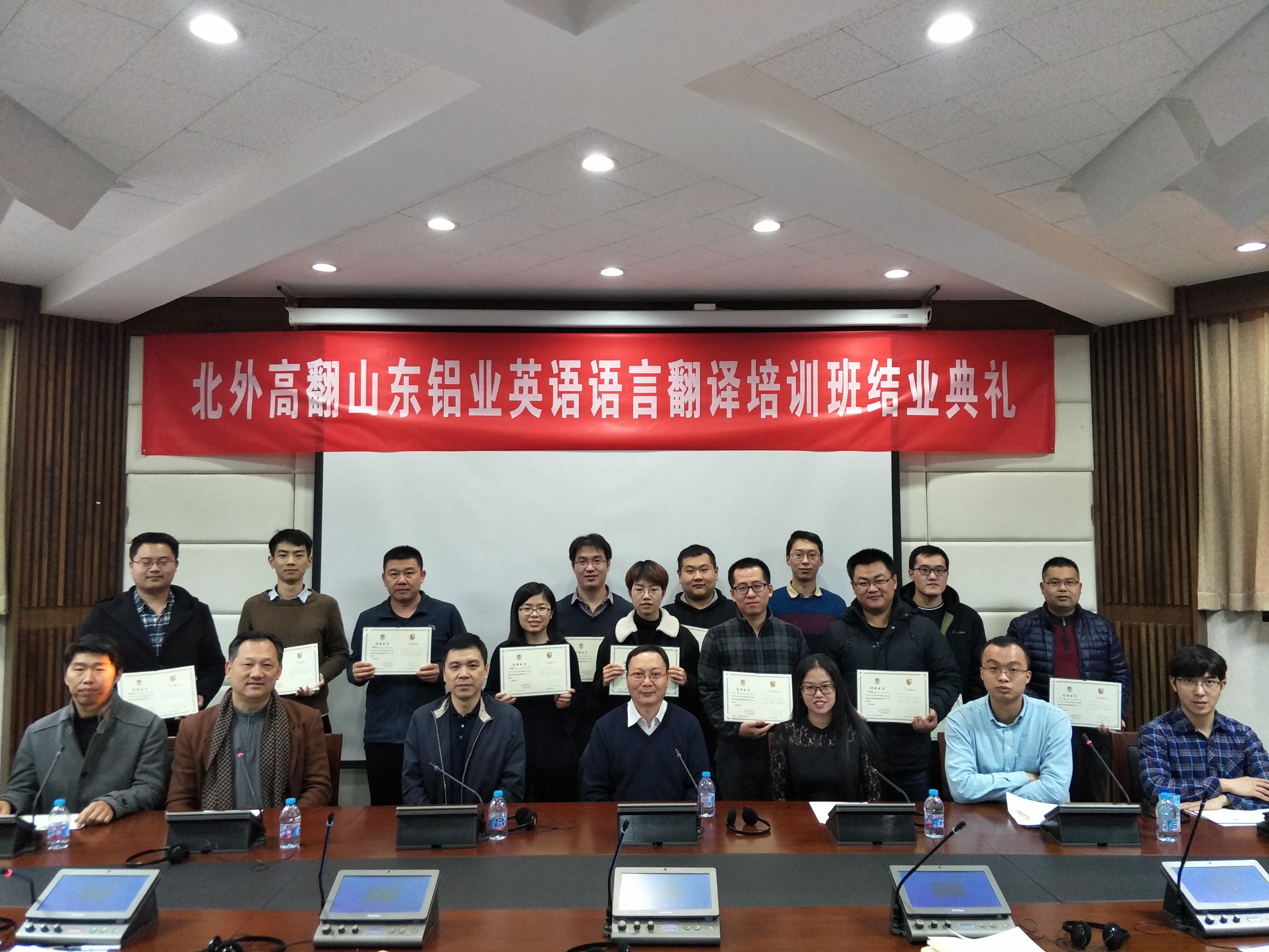 2017年12月27日,为期13个月的山东铝业英语语言翻译培训班在beat365正版唯一官网必一150人教室举办结业典礼,14名经过层层考试选拔出并组班的山东铝业员工,经过3个多月“艰苦卓绝”的学习,圆满完成了学习任务,收获了成果。
