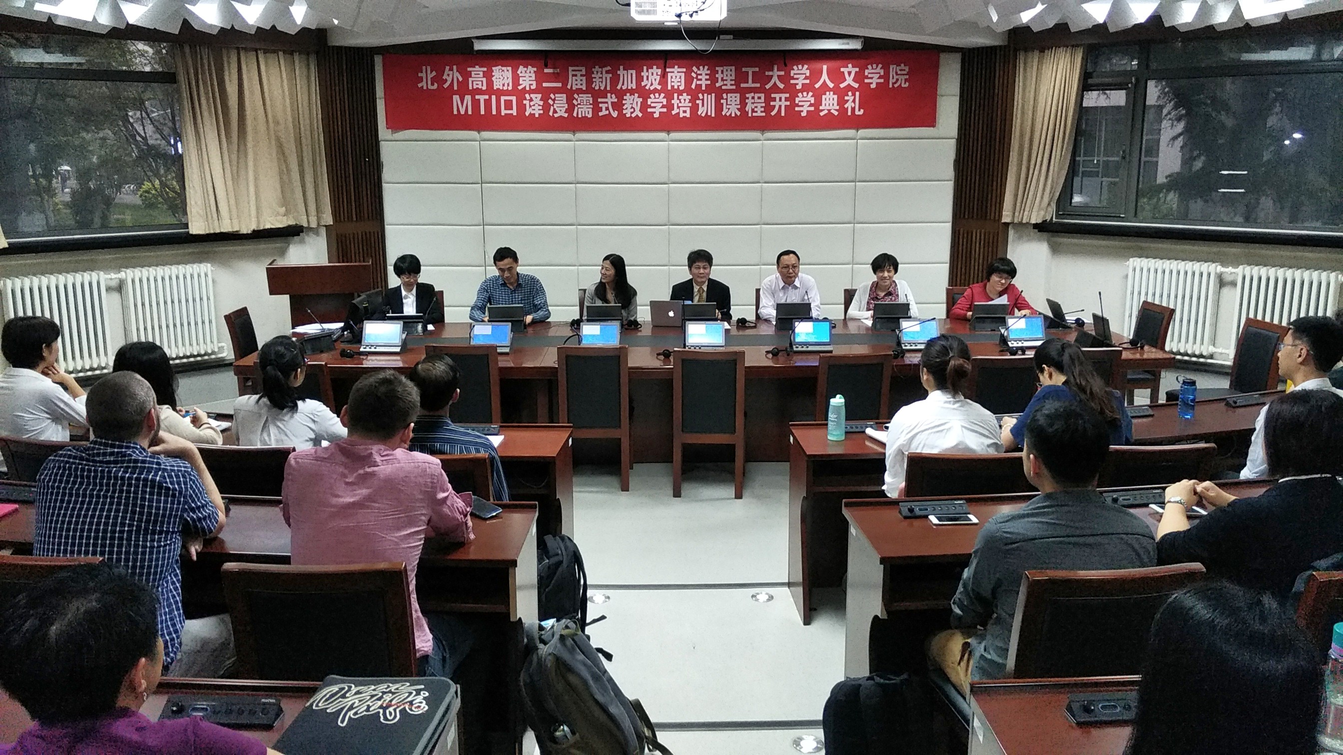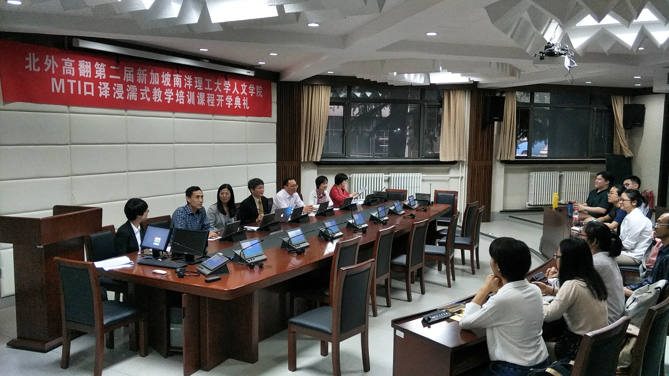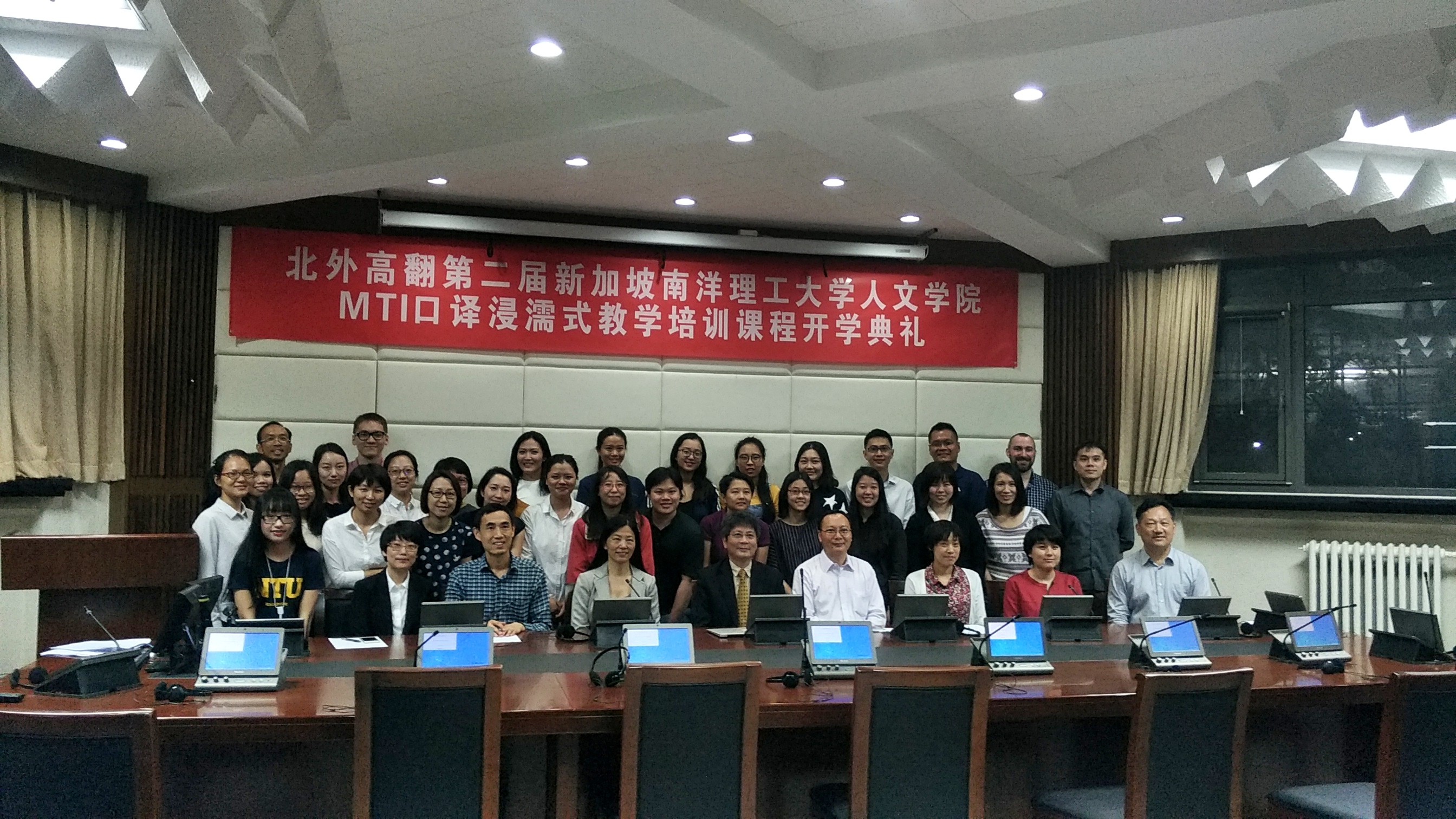 2017年5月22日,北外高翻第二届新加坡南洋理工大学人文学院MTI口译浸濡式教学培训课程正式开课。开课前,举办了隆重的开学典礼,新加坡南洋理工大学人文学院院长陆镜光、高虹博士和卞蕾老师;beat365正版唯一官网必一胡晓莉书记、李长栓和姚斌副院长参加了开学典礼。