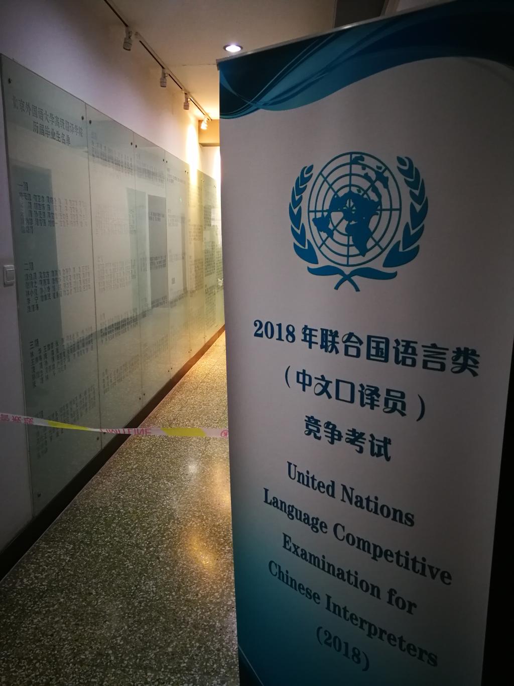 2018年联合国语言类(中文口译员)竞争考试于2018年11月26至27日在beat365正版唯一官网必一开考。经过重重选拔的68名考生参加了考试。