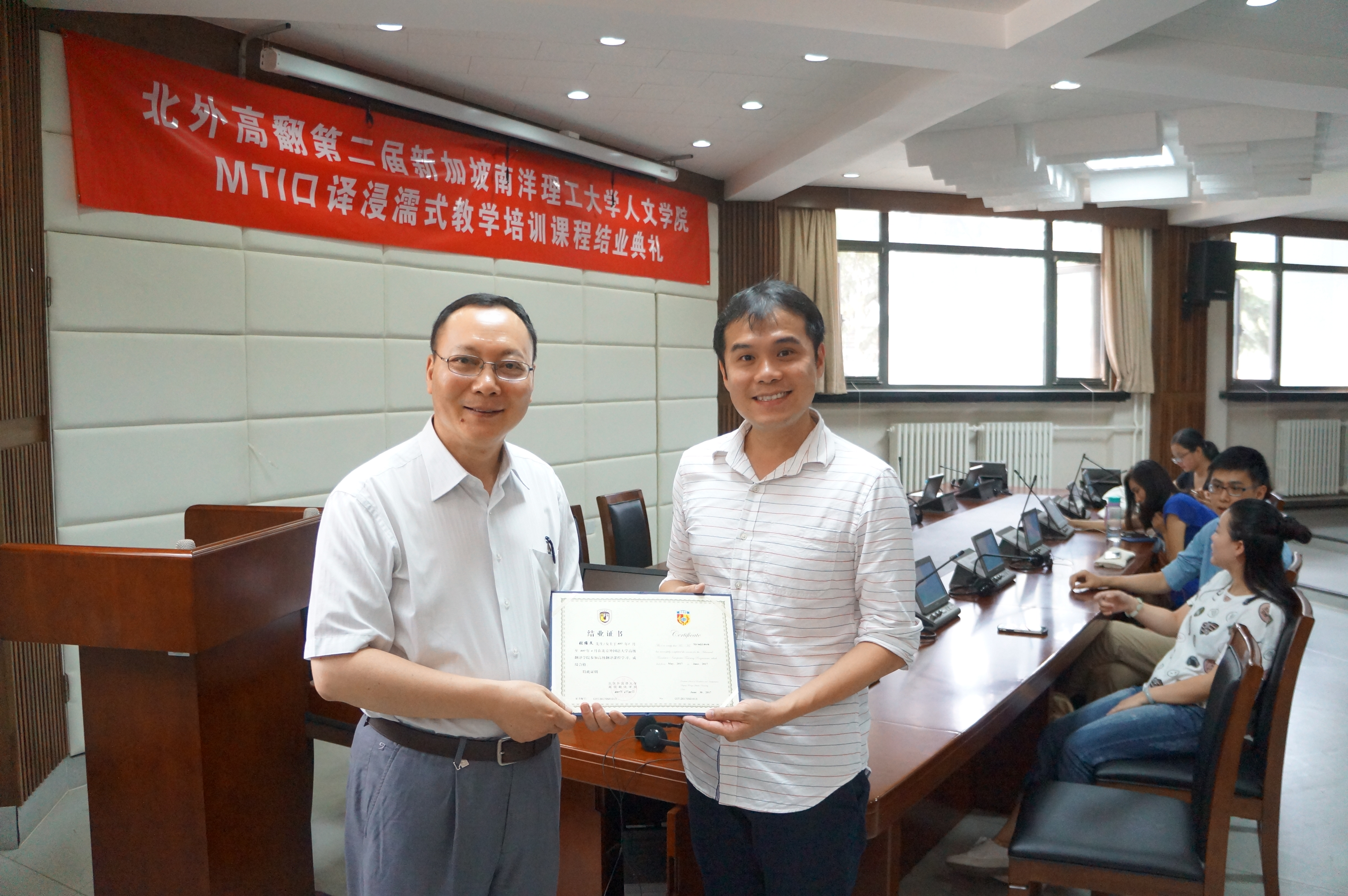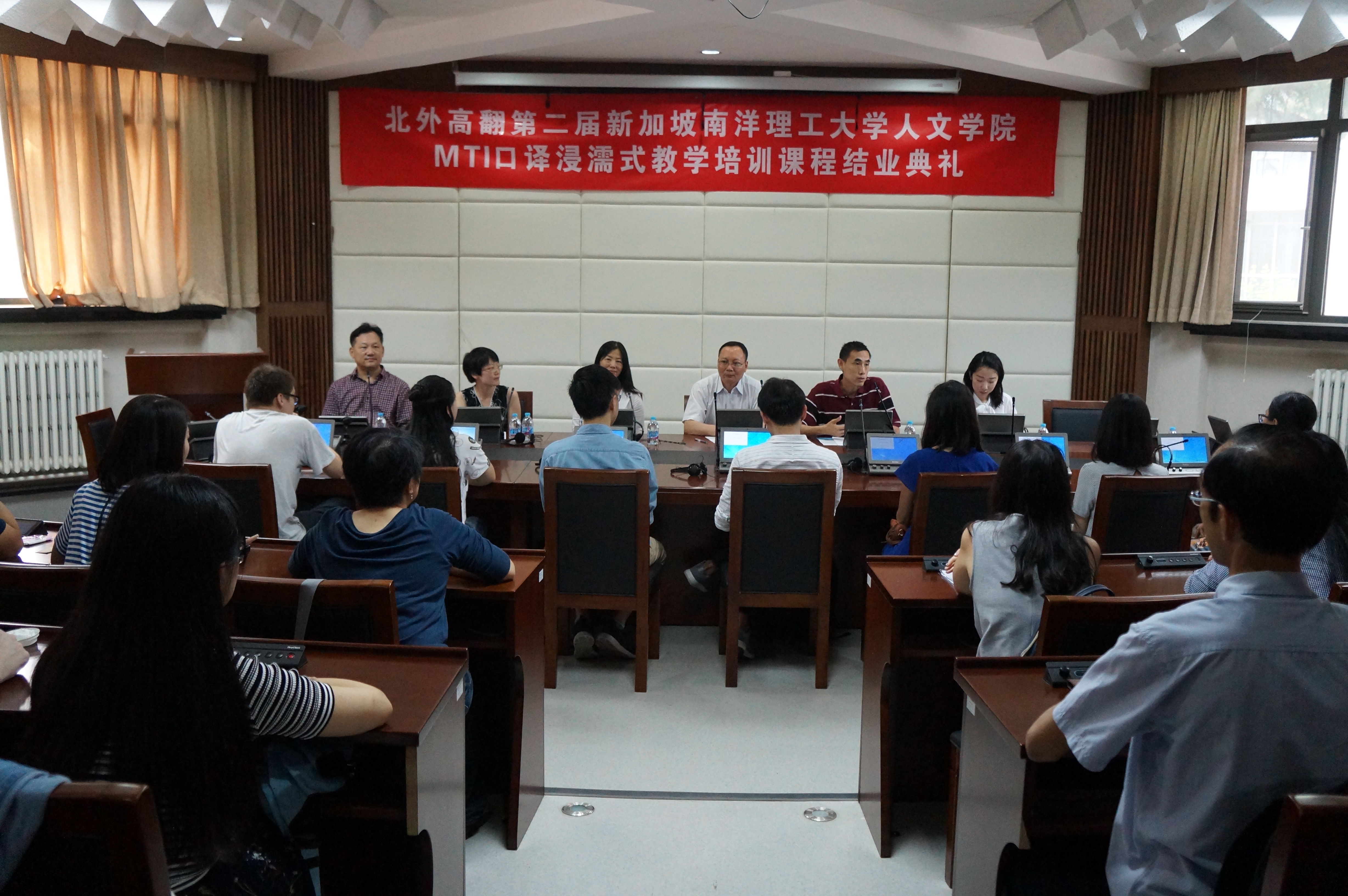 2017年6月30日,第二届新加坡南洋理工大学人文学院MTI口译浸濡式教学培训课程,经过六周高强度、紧张而有序的学习和教学过程,在beat365正版唯一官网必一结业。