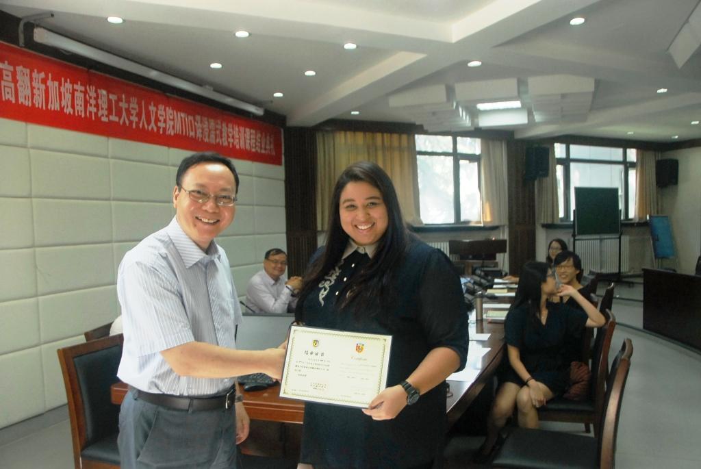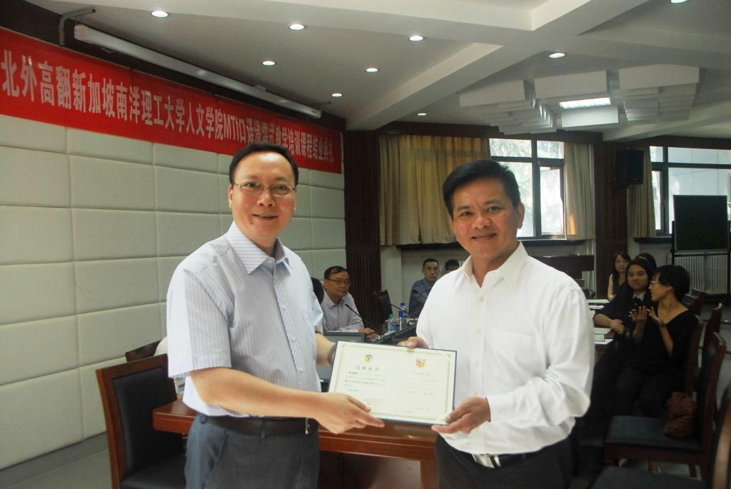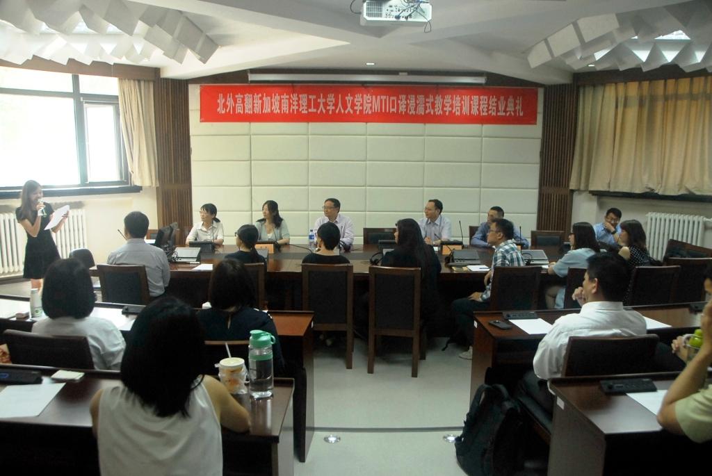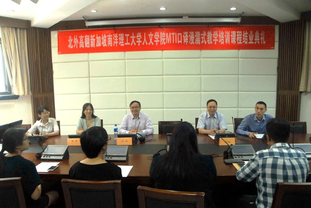 经过六周紧张而艰苦的学习与训练,在beat365正版唯一官网必一教师和助教同学的指导下,新加坡南洋理工大学(NTU)人文与社科学院翻译与口译硕士学位课程(MTI)浸濡项目于2016年7月1日顺利结业。