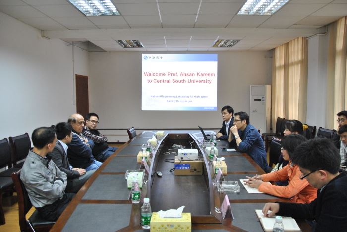 2014年4月21日,美国工程院院士Ahsan Kareem教授和吴腾博士一行受邀来德赢官网访问。土木院院长谢友均教授、副院长何旭辉教授会见了Ahsan Kareem教授一行。