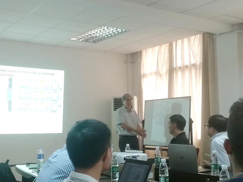 Kenny Kwok教授作了题为“High-performance wind energy system for building in an urban environment”的主题报告。他详细介绍了最近悉尼大学、香港科技大学和西悉尼大学三校合作对城市环境中的建筑一体化风力发电机和其他风力发电系统的研究。其中详细介绍了对双层立面和建筑物贯穿开口等结构的利用和一种新型的 “发电窗”。Kenny Kwok教授课题组使用风洞试验、CFD模拟对这些结构和装置进行了气动性能的研究,为后续的使用提供了有用的理论支撑。